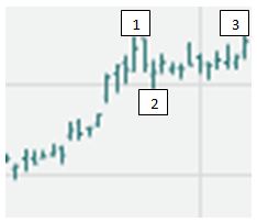 The 1, 2, 3 top places the protective stop loss right above the record high (1). The difference between points 1 and 2 determines the intended exposure. Make sure that dollar amount is appropriate for your personal risk tolerance.